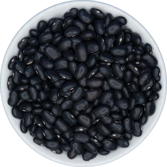 Black Turtle Beans (or Black Beans) are a small, shiny variety with a distinctive small white dot. They have a dense almost meaty texture and are high in fibre and protein, and low in fat.